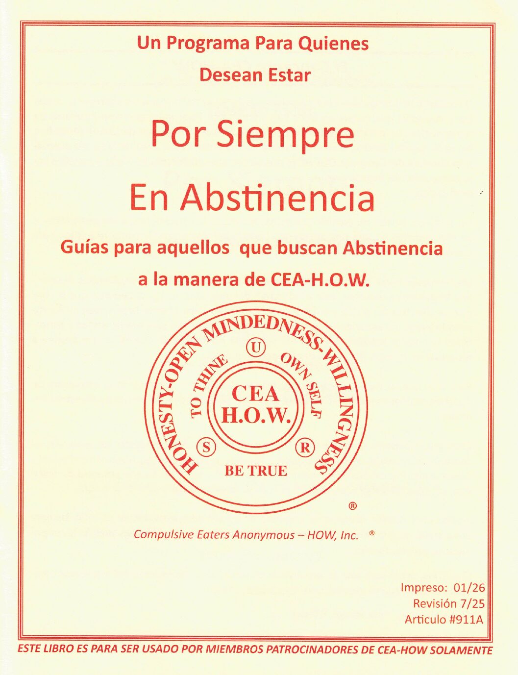 Por Siempre en Abstinencia Panfleto